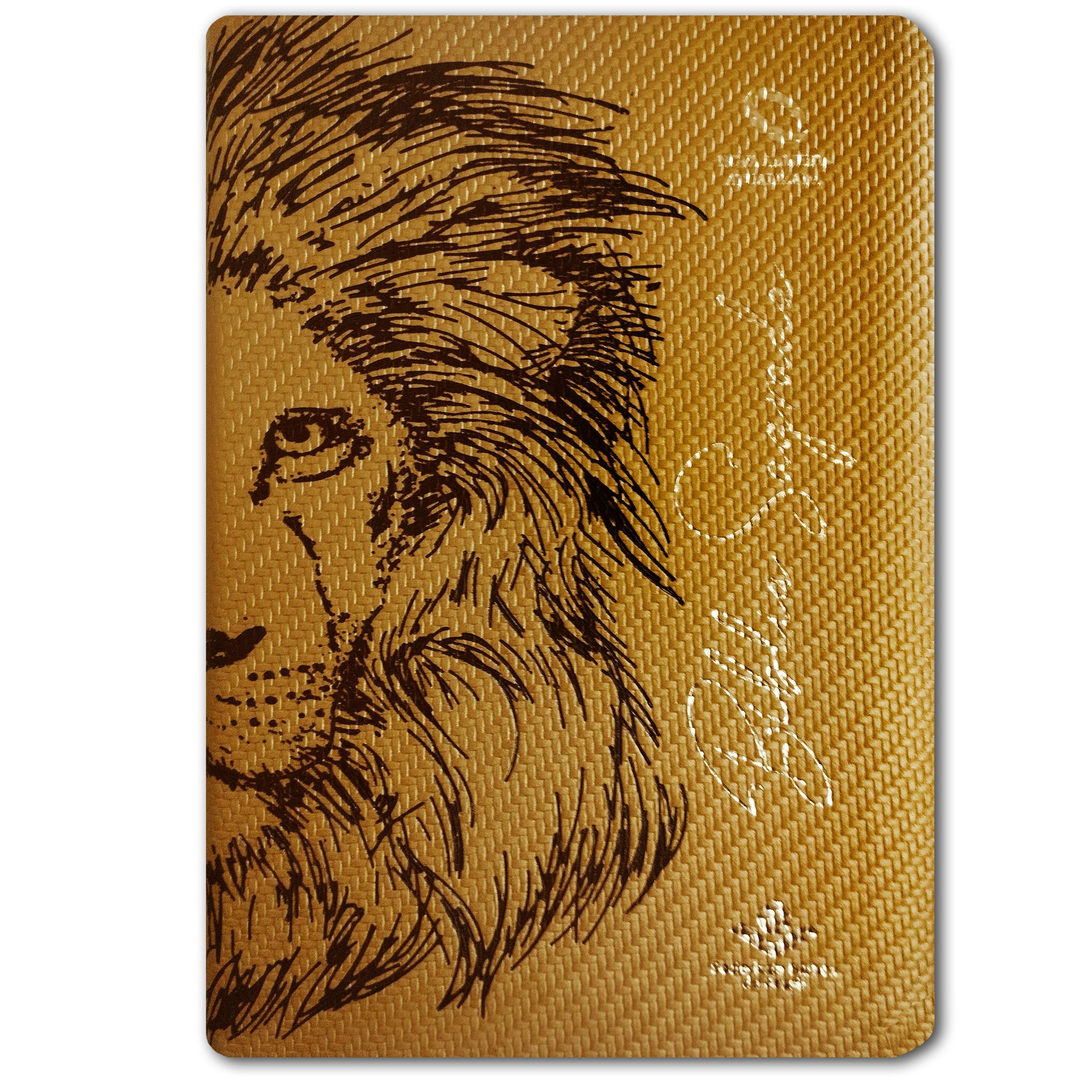 Apresentação: capa sintética com bordas douradas e marca-páginas de cetim